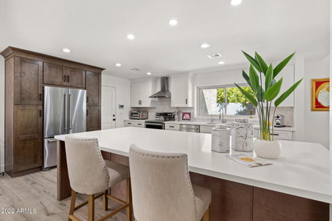 New in McCormick Ranch - Stunning Turnkey Home - Large private lot - A MUST SEE. Main living area with high ceiling, huge Cantera stone fireplace and stunning views of patio with fountain. Massive quartz island and white cabinetry. Beautifully appointed kitchen with stainless steel appliances. Porcelain floors throughout. New master and second bath vanity and quartz counters. New custom master closet design. Ample outdoor seating and entertainment area. Patio is fully paved with mature landscaping and citrus trees. A Gazebo for shade and fun. Total privacy. Additional upgrades include: state of the art WIFI enabled Eco Water Smart Water System with kitchen RO . New pavers with xeriscape entry. New laundry with sink and shelving. New light fixtures and spotlights throughout. Upgraded irrigation system with new clock, flow and pressure valves and irrigation tubing. Garage storage system. Updated entryway with new front door. And more! Located within minutes of everything Scottsdale has to offer. Walk to the Greenbelt! A true move in ready opportunity.