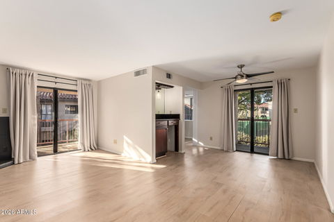 Situated in one of Scottsdale's most desirable zip codes, this beautifully updated corner residence offers a rare blend of privacy, serenity, and true indoor-outdoor living. With only one adjoining neighbor and no homes looking directly into the unit, the setting feels peaceful and secluded while still steps away from resort amenities.