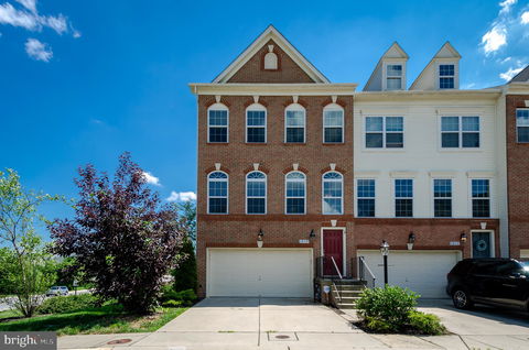 REDUCED PRICE!Wonderful 3 story end unit brick front townhouse with 2 car garage in a sought-after, amenity-rich community with pool, playground, and clubhouse. Why wait for a new home to be built when you can move right on in with all the bells and whistles. This six-year young home is truly move-in ready and has been freshly painted throughout with hardwood floors on the main level, gourmet kitchen with granite countertops and stainless steel appliances, and a dining room with sliders out to a nice size deck. Upstairs is a large master suite with vaulted ceiling, walk-in closet, and a beautiful master bath with separate tub, double vanity, and ceramic tile floor. The hall full bath has double sinks as well as a tiled floor. There are 2 more good size bedrooms and the laundry is also on this floor. The family room is large, bright, and carpeted with sliders out to a lovely patio and nicely landscaped area. There is also another 1/2 bath.