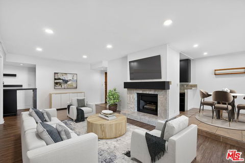 Bright and spacious street facing end unit. First level but ABOVE GROUND. 2 bed 2 bath with bar nook, dining area and a balcony off of the living room. Updated smooth ceilings, new Refrigerator and dishwasher and a 6 burner GAS stove. En-suite primary bedroom with no shared walls, glass shower, marble top vanity and a walk in closet. Large second bedroom with mirrored closets. Hall guest bath with tile floors and a pedestal sink. Gated parking garage, with tandem spot for 2 cars and storage in front. *fireplace is considered decorative. *photos with furniture are virtually staged. Convenient nearby freeway access, Whole Foods across the street with additional restaurants and shops in close proximity. Re- imagine the Bar area to fit your needs, could be an office, second closet/storage or gaming room.
