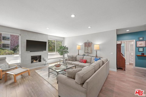 Presenting an upgraded and airy 2BD/2BA condo situated south of the Boulevard in Sherman Oaks. Step inside to discover a generously sized living room featuring a cozy fireplace, direct entry to the balcony and an abundance of natural light. Adjacent to the living room you'll find a versatile den perfect for use as an office or media room. The kitchen is complete with new appliances, sparkling counters, plenty of cabinet and prep space and opens to the dining room. Both bedrooms are en-suites separated from each other and the living spaces, for ideal privacy. The main bedroom offers a walk-in closet in addition to the wall-to-wall closets. The second bedroom has two wall closets as well as access to a private balcony. The home has new flooring throughout and in-unit laundry, and the unit comes with two side-by-side parking spots and a small storage space. HOA fee includes water. The complex is well maintained and offers a pool, spa and sauna. Located moments to all the dining and shopping on Ventura Blvd and easy access to the 101 and the Westside, welcome!Located moments to all the dining and shopping on Ventura Blvd and easy access to the 101 and the Westside, welcome!