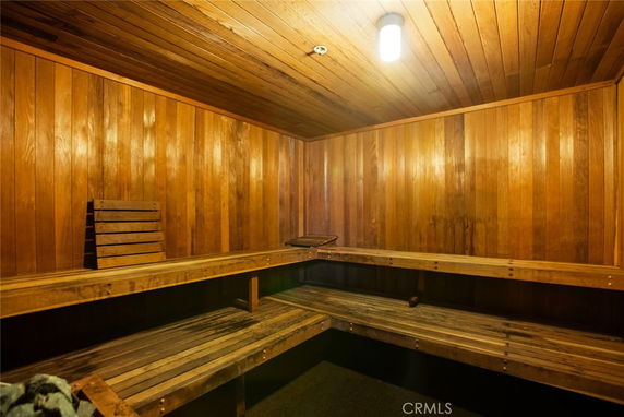 Plenty of amenities exist within the building. There is a fitness center, spa, and recreation room for leisure activities. The complex also features sidewalks, curbs, and street lights. Outdoor enjoyment comes from a pool, barbecue area, and sauna, providing multiple options for relaxation.