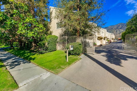 Updated spacious 1877 sq. ft. townhouse in desirable small gated complex on quiet street. Walking distance to shops, restaurants and parks in the award winning town of Sierra Madre. Remodeled kitchen with granite counters, backsplash and breakfast bar. Abundance of custom wood cabinetry; all KitchenAid stainless steel appliances: blt in stainless refrigerator, oven, range, microwave, dishwasher and trash compactor. Hardwood floors in kitchen and eating area. Attached 2 car garage with direct access into unit. Living room with focal fireplace featuring floor to ceiling tumbled marble facade. Flexible area off living room and kitchen can be either den or formal dining room. Inviting large patio. Downstairs powder room. 3 generous sized bedrooms upstairs. Grand sized, light filled master suite. Glass sliders with plantation shutters, balcony with mountain views. Custom outfitted walk in closet with center dresser island, glass fronted wardrobe, blt. in double hampers and lazy susan shoe carousel. Master bath with double sinks. 3rd bedroom with separate balcony and custom cabinetry in closet. Upstairs sunny laundry/hobby room. FA/CA. Dual zoned central heat.