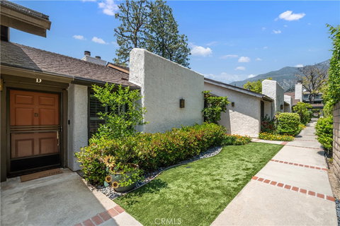 Rare single level townhome in the sought-after community of Sierra Madre! This two-bedroom, two bathroom updated townhome is the epitome of style and sophistication. The open concept floor plan is made for today’s lifestyle. The cozy living room is highlighted with a gas fireplace and custom wall cabinets. A large dining room leads to the chef’s kitchen. Updates to kitchen include solid wood cabinets with Silestone countertops, oversized KitchenAid side by side refrigerator, double ovens and a Bosch dishwasher. Walnut engineered hardwood floors and interior shutters enhance the warmth and sophistication of the home. Sliding patio doors open to a private courtyard with majestic mountain views. A motorized retractable awning will provide year-round protection from the sun and rain. The large primary bedroom has a custom-built desk making remote work possible. The primary en-suite bedroom includes a walk-in closet, updated bathroom with a double sink vanity and large dual shower head fixtures. Spacious two car garage is attached to the courtyard with easy access to the townhome. Walking distance to vibrant downtown Sierra Madre with unique shops, restaurants and community events. This beautiful townhome is the perfect place to call home!