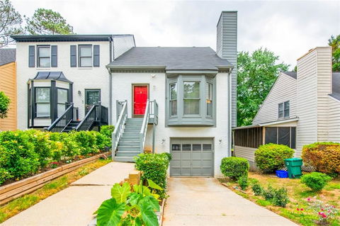 Loads of potential for this fee simple townhome in Smyrna with no HOA and endless possibilities. Open floor plan with one oversized bedroom and bathroom on main and another large bedroom and bathroom upstairs. Lots of Nature light in this end unit. Vaulted/open living room with fireplace. Large kitchen with breakfast bar. Cozy dinning area. Updated hard surface flooring on the first floor, updated appliances, new deck, new water heater. Great opportunity for first time home buyers or can be a great rental. This townhome is near Smyrna Market Village.