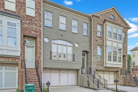 The chef's kitchen boasts an abundance of white cabinets, a large island with a breakfast bar, tile backsplash, granite countertops, stainless steel appliances, and a pantry closet. The large dining room is perfect for hosting dinner parties. The primary bedroom offers plenty of space for extra seating or an office area, and includes an attached ensuite bath with a separate tub and shower. The upstairs secondary bedroom is oversized and also has its own attached ensuite bath. The lower level is finished with a guest room/office and a full bath. The garage features a new epoxy floor, an added electric car charger, and a whole house surge protector. New HVAC systems 2020 and 2021. Guests will have plenty of parking with several community guest spaces right outside your front door and a grassy yard space in the rear. Enjoy an easy stroll to Taylor Brawner Park, a 10-acre park with a gazebo, pavilions, walking trail, amphitheater, playground, and open space where you can often find food trucks, an artisan market, and more. In just minutes, you can access I-285, Truist Park, Silver Comet Trail, Chattahoochee River, several golf courses, as well as the popular shops and restaurants of Smyrna Market Village (1.5 miles) and Vinings Jubilee (2.5 miles).