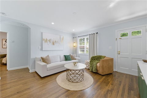 Welcome home to this stunning 2 bedroom/ 3 Full bathroom gem located in the heart of Smyrna. Village Oaks is a beautifully landscaped, fee simple community nestled within mature hardwoods. Walk to Smyrna Market Village shops, restaurants, library, community center, playgrounds/splash pad, Publix, and so much more. This end unit townhome with a basement is a rare find and a must see. On the main level, you'll find the Primary suite with newly renovated ensuite bathroom, an additional full bathroom, living room, kitchen w/ all new stainless appliances, and separate large dining area. Off the dining area is a large upper deck, overlooking the vast greenspace of the quiet community. In the basement, you'll find a large media room/flex space, bedroom, full bathroom, laundry room, covered patio, and 2 storage rooms. This is one of the few communities in Smyrna without rental restrictions! Low HOA dues...the HOA includes water, sewer, trash, and weekly landscaping. 1 assigned parking spot & ample street parking for an additional car/guests. Sidewalk access to both front door and back door of the unit from parking spot. Easy access to I-285/75, and Truist Park/Battery. Don't miss out on this unique opportunity to own in downtown Smyrna!