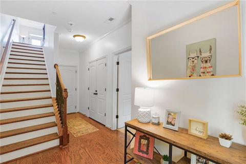 SMYRNA MARKET VILLAGE LIVING!! Welcome Home to 1227 Poston Place, the home where you'll make precious memories that last a lifetime! This lovely townhouse has such an inviting atmosphere. You can feel the warmth and love as soon as you walk in. Perfect for entertaining, the main level features beautiful hardwood floors throughout, along with a spacious party deck featuring a custom motorized awning. The kitchen is equipped with a gas range, state of the art - stainless steel appliances and deluxe granite countertops. Upstairs there's plenty of space to relax in your oversized master bedroom complete with a walk-in closet and a spa-like master bath boasting both a bubble bath garden tub and a separate shower. Another convenience is the laundry is right off the master bedroom! Both HVAC systems are just over a year old! Get ready for convenience living right by Smyrna Market Village, Belmont Village, Taco T (my favorite authentic Mexican restaurant), The Battery (for all Braves fans) including nearby nature trails, Silver Comet Trail, and The Chattahoochee River - not to mention easy access to I-285, I-75 & 400! What more could you ask for? I’d like to also mention both the Police Station and Fire Department are right next door. Be sure to see our music video on YouTube for 1227 Poston Place, it’ll make you fall in love with Poston Place ever more! We’re excited for the new homeowners, 1227 Poston Place has been incredibly special! Be sure to check out our Music Video on YouTube for 1227 Poston Place!