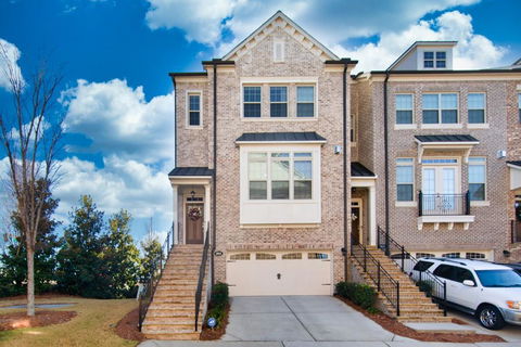 This home is in a prime location near Truist park and The Battery with lots of shops and restaurants nearby! This stunning 3 story end unit townhome in a gated community full of upgrades is the home you have been looking for! Gleaming hardwoods to greet you at the 2 two story entrance. Beautiful kitchen features an island with a wine fridge and a breakfast bar as well as stainless steel appliances and ample cabinet space. Open concept dining room with coffered ceilings and a brick accent wall is the perfect place to entertain guests. The cozy family room has lots of natural light, built in bookshelves and a warm fireplace. Upstairs you will find 3 spacious bedrooms with custom closets. The primary bedroom features a trey ceiling and large custom built-in closets. The primary bathroom includes an upgraded tile shower, oval soaking tub and separate dual vanities. The finished basement comes with a custom home theater room, second living room and a convenient drop zone. Another amazing feature of this home is the garage with new flooring, barn doors, built in bluetooth speakers, wall mounted vacuum and air pump. Enjoy your time sipping a hot cup of coffee on the back deck or patio. This home has brand new smart thermostats throughout the home. Tons of upgrades- this one is a show stopper and perfect for the busy executive lifestyle!