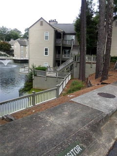 Welcome to this Beautiful well maintained condo just minutes from I-285, Truist Park, and the New StillFire Brewery! Complete modern farmhouse style cosmetic renovated open floor plan. Amazing views of the pond from every room with a lot of windows and a ton of natural light. Deck overlooking the pond, waterfall, and fountain great relaxation or home work space. All new energy-efficient windows & doors, drywall, new solid wood interior doors and trim, designer light and plumbing fixtures, kitchen cabinets with quartz countertops, oversized island with double-sided cabinets that have plenty of storage. The master bedroom has an oversized walk-in closet. All bathrooms are fully remodeled with beautiful tile, new vanity with quartz countertops. Upgraded vinyl plank flooring with carpets in bedrooms. The water heater and HVAC are 3 years old. Move-in ready. Association fee includes water, trash, sewer, pool, tennis, termite, and exterior maintenance.