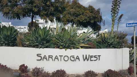 Beautiful end unit at Saratoga West with 3 bedrooms, 2.5 baths and 2 car detached garage. Private patio off MBR and office/bedroom. It has sweeping valley and race track views from living room and dining room with deck ideal for BBQ. Modern decor sets off the architectural design of the light filled living room with fireplace and canted skylights. The updated kitchen with breakfast bar share the views. This complex includes a pool, spa and sauna along with a beautiful club house and work out area/gym. It's located just off the I-5 and close to beaches, shopping, restaurants in Solana Beach and Del Mar.