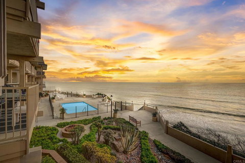 Welcome to this completely remodeled 2 bed, 2 bath oceanfront condo in the heart of Solana Beach, With a tasteful beachy color palette this condo exudes coastal charm.Step into a kitchen equipped with brand new appliances, making meal preparation a breeze while allowing you to savor the stunning views just beyond. This condo offers practicality with a single-level layout and convenient accessibility – there are no steps from the garage to the front door. However, the building features an elevator if needed. This community provides many amenities, including direct private beach access, 4 sparkling pools, tennis courts, exercise room and an oceanfront clubhouse. Enjoy the convenience of strolling to nearby shops, restaurants, and bars. If looking for an investment, this complex allows weekly rentals. Experience the very best of beachfront living in Solana Beach. Don't miss the opportunity to make this your own.