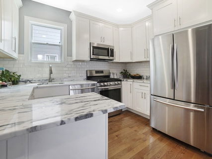 Bright and airy 2BD/2BA East Somerville condo, now available! The perfect mix of modern upgrades and charming architectural detail, complete with parking, yard space, central air and in-unit washer/dryer. Enter this open concept, single floor living through a private entrance via a covered porch, which is also perfect for al fresco dining. The renovated eat-in kitchen is complete with stainless steel appliances, custom tall cabinets and gleaming white with grey accent countertops. The breakfast bar provides additional prep space and seating. A full bath with tub & large second bedroom are located off the well appointed living space. The stunning primary suite features floor to ceiling windows, a custom built-in window bench seat with storage and an en suite bathroom with shower. Additionally, there is 200sqft of exclusive storage space in the basement. Close proximity to the restaurants and shops of Broadway, as well as the MBTA orange line and future green line stop.