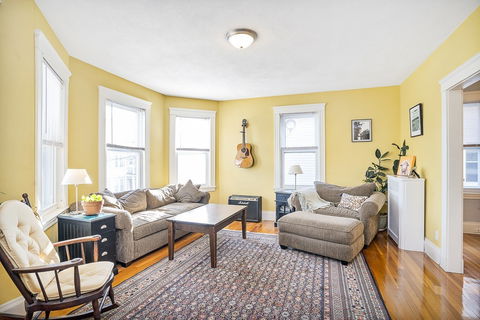 This SUN-DRENCHED two bed, bath and a half, 2nd-floor CONDOMINIUM is situated on a lovely one-way, tree-lined street in desirable TEELE SQUARE. Upon entering the foyer you'll take notice to the Gleaming hardwood floors radiating through the SUN-LIT living room. The perfect blend of old charm and modern updates include a kitchen with granite counters & stainless appliances, high ceilings, and an original built-in china cabinet! SPACIOUS bedrooms, an enclosed rear porch perfect for an office or study, an open front porch for those warm summer nights and a BONUS finished basement space makes the ideal exercise room! A shared yard, 1 parking spot, and private laundry round out this inviting space. Located minutes from DAVIS SQUARE and Alewife Station, Bus routes are available at the top of the street, and it's highly accessible to Route 2, and 93! Multiple grocery stores steps away, an abundance of bars and restaurants, the community bike path, gyms, and more. ACT FAST this one won't last!