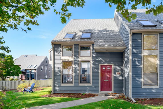 Front view of a two-story house with a red door and multiple windows.MLS ID #72573759