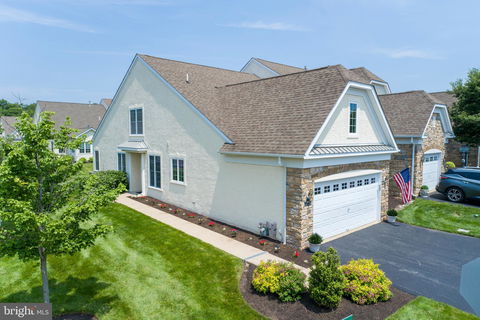 Elegant end-unit townhome offering the best of comfort and convenience located in the desirable 55+ community of Harrington Village. With 3 Bedrooms, 3 Full Baths, and 2,324 square feet of beautifully maintained space, this home is move-in ready and packed with thoughtful details! Step into a bright, freshly painted open layout featuring gleaming hardwood floors, pristine carpeting, and new ceiling fixtures. The Eat-In Kitchen is a true highlight—freshly painted cabinets, sleek new hardware, granite countertops, gas cooking, large Kitchen peninsula, pantry storage, recessed lighting, and adjacent Breakfast Nook make it as functional as it is stylish. The Dining area features classic crown molding and chair rail and opens to the spacious Family Room with vaulted ceilings, cozy gas fireplace, and plenty of room to relax or entertain. Just off the Family Room, the bright and airy Sunroom brings in tons of natural light and leads to a covered outdoor patio with its own ceiling fan—perfect for morning coffee or evening wind-downs. The first-floor Primary Bedroom Suite is a serene retreat with tray ceiling, walk-in closet, and updated en-suite Bathroom featuring a dual vanity and stall shower. A Second Bedroom, another updated Full Bath, and Laundry Room complete the main level. Upstairs, you'll find a HUGE loft area overlooking the Family Room along with a private Third Bedroom with vaulted ceilings, and upstairs Full Bath. A generously sized storage/utility closet rounds out the second floor. The large 2-car Garage adds even more value. Take advantage of low-maintenance living with snow and trash removal, lawn care and common area maintenance. Enjoy an after dinner stroll on the community walking trail, or head to the community clubhouse that features a fitness center, game room, gathering room, and its very own kitchen. All this, with quick access to major routes and downtown Souderton make it one of the best buys in the area! Make sure to schedule your appointment now!