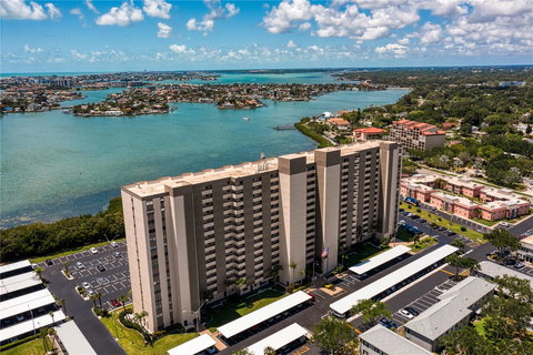 Welcome home! Now is your chance to own your very own slice of waterfront paradise over looking the blue waters of the Gulf of Mexico and Boca Ciega Bay. Fall in love with this completely remodeled two bedroom and two full bathroom condo that left NO expense spared. From the moment you walk into this beautifully adorned condo, everything that meets the eye is Brand New!! You’ll notice the breathtaking views ahead of you, and then you’ll fall in love with the brand new wide plank wood tile flooring throughout, brand new paint throughout, brand new stainless steel LG appliances, new fans and lighting throughout, luxury high end kitchen faucet, Ruvati workstation kitchen sink with different attachments, white shaker soft close cabinetry, exquisite black granite with built in pull out drawers and extended counter for bar seating. The Master Suite features an en-suite bathroom with glass enclosed shower with beautifully laid full length subway tile, new Kohler plumbing fixtures, new toilet, and brand new lighting. Your guests will be in heaven with their private bedroom suite and full bathroom with glass enclosed shower, flanked with full length glass subway tile, shower box, massive quartz vanity and new toilet. When living in this waterfront condo you’ll be an elevator ride away from a private heated pool, fully equipped workout gym, sauna, steam room and entertaining quarters. Take a walk to grab your paddle board or kayak with private access for owners to the Bay to watch the manatees and dolphins swimming nearby. This home is minutes away from the #1 beach rated by Trip Advisor, restaurants, shops, and so much more. Take a drive to the Pier or jump on the new rapid Sun Runner Bus servicing “ The Beach to the Burg”and visit the newly developed St Petersburg Pier, or go check out a Rays Baseball game. Conveniently located 30 minutes from Tampa International Airport. This Unit comes with private storage space and One covered parking spot is included with purchase of this condo.