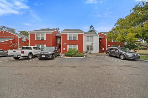 Centrally located and completely Updated ~~ FIRST Floor home! All new flooring ~ New Thermal Sliding Doors ~ New Kitchen Cabinets ~ Stone Counters ~ Stainless Appliances. Large open floor plan. Kitchen has beautiful stone counters ~ Breakfast Bar with stool seating/ perfect for gatherings ~ Sizable Dining area ~ Large Living Room ~ Lots of Light ~ Updated Bath ~ Large Bedroom with Two Wall Closets ~ Plus Storage Room with washer/dryer hookup ~ Bonus is the Custom decorative treatment on the bar side of island and throughout the home. The covered back patio overlooks a large tranquil treed 'back yard'......perfect for relaxing outdoors....or take a short walk to the pretty community pool! A block from retail plazas and Publix, close to The Gulf, Tampa Bay, trails and activities. Monthly fee covers water, sewer, trash plus all exterior building and ground maintenance...and community pool. Live here OR Buy and have Rental Income!