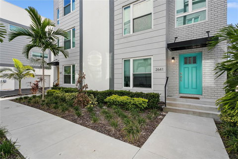 Immerse yourself in all that downtown St Petersburg has to offer in this incredibly appointed NEWER CONSTRUCTION townhome located in Historic Kenwood and one block from the incredibly exciting Grand Central District with boutiques, coffee shops, restaurants, and nightlife! Upon entering you will find a first floor bedroom with large windows and an ensuite full bathroom. The second floor offers ease of entertaining with an open floor plan with a great room, and kitchen with a custom bar and desk area, and a walk-in pantry and half bathroom. Windows adorn the second level offering an abundance of natural light. Cooking is a breeze in the open kitchen with stainless steel appliances and large kitchen island with terrific storage. The third level offers a large owner's suite with ensuite bathroom, a conveniently located laundry room and a second guest room with a full bathroom. Enjoy the beautiful sunsets on the fourth floor patio with plenty of room for a grill. This townhome is fully upgraded to include automatic Hunter Douglas shades throughout, a smart thermostat, custom closets, and an oversized 2 car garage with plenty of storage room. This community also boasts low monthly HOAs, and a dog park.