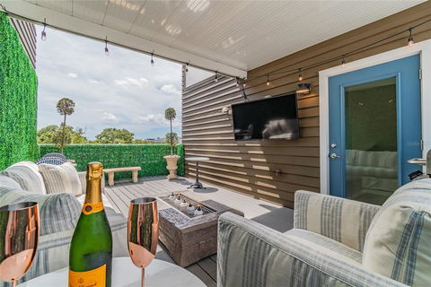 Welcome to Downtown St. Petersburg luxury living at its finest. Located steps away from historic Mirror Lake, you can park your cars in your 2 car garage and walk to all the restaurants and bars St. Pete is known for. Upon entry on the first level you will find a private guest suite accompanied by an en-suite full bathroom and walk in closet. Make your way to the second level to find a beautiful open concept with all new luxury finishes including: custom drapery from local designers, a French inspired restoration hardware chandelier, engineered hardwood flooring, quartz countertops and every chef’s must have a gas oven/stove. As you enter the third level you will see your brand new top of the line LG washer and dryer. Next to that you have another guest room that has a custom made Murphy bed that allows this room to be utilized as an office or workout space when needed, and if guests stay you can easily transform back into a guest room. Down the hall you will find your spacious master bedroom with custom drapery, 10 foot ceilings, custom his and her closets, and a large shower with a frameless glass door. Up just one more level you can totally escape to your private rooftop oasis. Don’t worry as the rooftop also features a full wet bar to ensure you can entertain in style or make it easy to grab a night cap after work. This home features concrete construction, hurricane windows and is Energy Star Certified. The common area of townhome community features a fully fenced and gated area and a dog run for your furry friends. This one will not last long as a unit like this is rarely available in this 10 unit boutique townhome community.