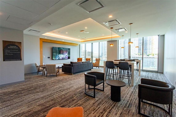 The building features an array of amenities across multiple floors. The seventh floor hosts over 36,000 square feet of both indoor and outdoor areas. Residents have access to a resort-style heated pool and a state-of-the-art fitness center. Relaxation spots include a spa, hot tub, and cabanas.