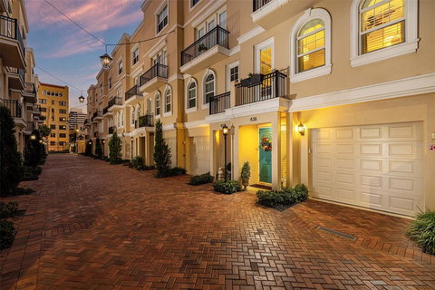 Welcome to the exclusive GATED community of Regent Lane, less than 2 blocks from Downtown St Petersburg and Beach Drive. This newly built, end unit townhome is ready for its next owner! Located in the heart of St Pete this 5-level modern townhome has been meticulously maintained and cared for by the original owners! The ground floor has a two-car oversize tandem garage with custom epoxy floor finish, industrial storage racks and private elevator access. 2,180sqft of heated living space with tons of upgrades including wood floors throughout, crown molding, plantation shutters, high-end fixtures, ceiling fans and ample storage space! The entertainment floor is on the second level and features a powder bath, dining room, and kitchen/living room combo. Being an end unit, the dining room is especially light and roomy with its large bay window. The upgraded chef’s kitchen has a massive island with GRANITE counters, STAINLESS steel appliances, gas range, custom range hood, luxury fixtures, double door pantry and loads of cabinets for extra storage. Custom decorator treatments frame the perfect entertainment setting. The third floor is entirely dedicated to the owner’s suite. The bedroom can accommodate any size furniture with a private balcony to enjoy morning coffee and view of the community courtyard. Dual closets and a large primary bathroom with a beautiful glass enclosure to the walk-in shower makes this the perfect living quarters! A bonus niche on this floor offers custom shelving and cabinets that can function as an office, vanity or both! On the fourth floor are two additional guest bedrooms, each with ensuite bathrooms and the laundry closet perfectly upgraded with cabinets, folding space and barn doors. The rooftop terrace on the fifth level offers breathtaking views of the downtown skyline, a glimpse of the St Pete Pier and partial water view of Tampa Bay! In the center of all the action, this home has great potential for living the St Pete life. Low HOA fees and no flood zone! Just blocks from endless restaurant options, shopping, parks, and nightlife along with easy access to the interstate and major roads. View this gorgeous townhome using this virtual link https://my.matterport.com/show/?m=rrwK6vCkfUS&mls=1 or schedule your appointment today. Floor plan and upgrade list available. Room Feature: Linen Closet In Bath (Primary Bedroom).