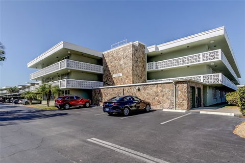 One or more photo(s) has been virtually staged. Cash buyers only. Second-floor end unit in Winston Park Northeast (55+), located near the elevator and laundry with covered Carport #103 just steps away. One-bedroom, one-bath floor plan with the large walk-in closet. Fresh brand new wall-to-wall carpeting and a ceiling fan in the bedroom and living room. Kitchen features extended countertops for additional workspace, LED lighting, and LG refrigerator (Oct 2025). Bathroom includes walk-in shower and granite vanity. Thermal windows in front living room and double-pane windows in rear of unit. 2021 HVAC (handler and compressor) and new electric panel (2026). Community includes landscaped courtyard, pool, shuffleboard, and organized activities. Milestone Inspection and reserve study completed. Leasing permitted after one year of ownership. Northeast St. Petersburg location: 10 minutes to downtown, walk to Whole Foods and Publix. Trader Joe’s, Fresh Kitchen, and Rollin’ Oats are a short drive away. Five minutes to YMCA and two golf courses. Twenty-five minutes to Tampa International Airport. Affordable living at it's finest!