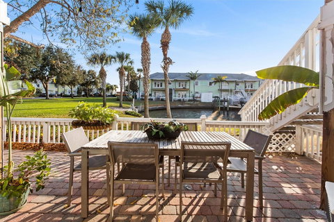 Welcome to the beautiful Waterside at Coquina Key South, affectionately referred to by its residents as a hidden gem! This resort style community includes 88 acres of tropical Key West architectural design with colorful exterior and peaceful landscape including 3 miles of seawall to walk along and take in the gorgeous view of Tampa Bay and Little Bayou. As you enter the 24 hour staffed guarded gate, you will feel like you are living life on the ultimate vacation! This first floor, 2 bedroom, 1 full bath unit has been completely renovated with waterproof luxury vinyl plank flooring throughout, quartz countertops installed in kitchen with high top bar and premium tile backsplash, new refrigerator, range, and microwave. The full size remodeled bath with ceramic tile flooring, subway tile shower, glass sliding shower door, new vanity fixtures, along with new interior paint and new baseboards installed throughout will not disappoint. Recessed lighting has been added in the common areas and new bedroom ceiling fans installed, as well. As you step out onto the back patio, you will be swept away overlooking the nearest canal to the open water of Little Bayou and Tampa Bay, with a clear view of the gorgeous sunsets. This ground level unit is very popular, compared to 2nd level units, as they allow for back patio grilling. Also available for separate purchase is a coveted private, 13k lb, boat lift just steps from the back patio that would enable you to enjoy the world class boating and fishing in Tampa Bay and beyond. Enjoy spending time with your family and friends while taking part the numerous amenities Waterside at Coquina Key has to offer. With 2 pools, a state-of-the-art fitness center, basketball, tennis, pickle-ball, shuffleboard, putting green, sand volleyball, dog park, lit fishing pier, library, pool table, pool-side grills and a private bar, along with separate Yacht Club with ballroom~there is plenty of fun to be had without ever leaving home! Kayak launches are located at each canal. Kayak storage, boat slips and dry storage can also be purchased or rented, as available. Located less than 10 minutes from downtown St Pete, where you can enjoy your days and evenings full of activities and festivals throughout the year. The area offers vibrant shopping, restaurants and art galleries, in addition to the St Pete Pier. The gorgeous top rated beaches of Ft DeSoto Park and St Pete Beach are just a few minutes away. Come enjoy everything beautiful that the Waterside life has to offer at Coquina Key South ....your paradise awaits!