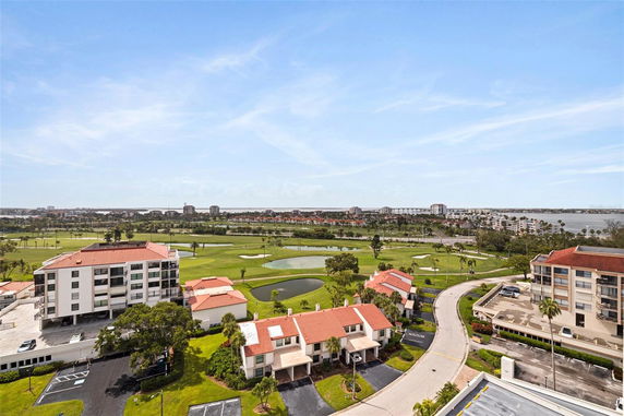 Residents enjoy stunning water views from nearly every room. Panoramic views of Boca Ciega Bay can be seen throughout the building. Located within the Isla Del Sol Yacht and Country Club community, the property offers various amenities. These include a fitness center, pool, spa, and clubhouse, along with golf and tennis facilities.