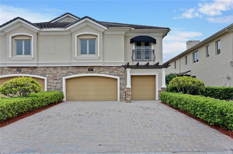 Exceptional quality and enduring style is this gorgeous Saint Petersburg “Dresdin” model townhome in a gated community known as “Saxony Place At Carillon”. Over 4,600 square feet is this beautifully appointed 4 bedroom, 4 ½ baths, 3 car garage, end unit, lakefront home. The first level of this two story features a large eat-in-space kitchen with custom solid wood cabinetry, granite countertops, stainless appliances, wine cooler and an oversized island with prep sink, a formal dining room with wainscoting, spacious living room with electric fireplace, powder bath and plenty of storage closets. Crown molding throughout as well as surround sound system. Take the birchwood staircase to the second level and enter the double doors of the master suite which features an electric fireplace, crown molding, surround sound system and an oversized screened patio. Three additional bedrooms each with their own full bath (one of the bedrooms is presently set up as a media room with seating for 8) and large laundry room with cabinet storage. This townhome construction is concrete block 1st and 2nd levels, Pella hurricane rated windows, plantation shutters, 2 zoned A/C system and $375 monthly maintenance fee. Excellent location convenient to St. Pete/Clearwater & Tampa International Airports, all area beaches, Baycare Outpatient & Wellness Center, restaurants, grocery stores, Feather Sound Country Club and Interstate 275. Seller is offering financing and will consider a lease purchase as well as a yearly lease.