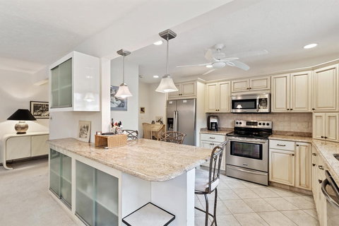 Simply stunning and very rarely offered is this updated and extensively renovated 6 room, 3 bedroom, 2 bath Condominium at Fellsview Terrace! This fine home has it all! Large renovated kitchen with tile floor, granite, recessed lights, black appliances, window, ceiling fan, and 3 person breakfast bar open to large dining room with wall a/c, living room with fireplace and huge balcony overlooking courtyard pool. Full bath off hallway, giant master bedroom h...