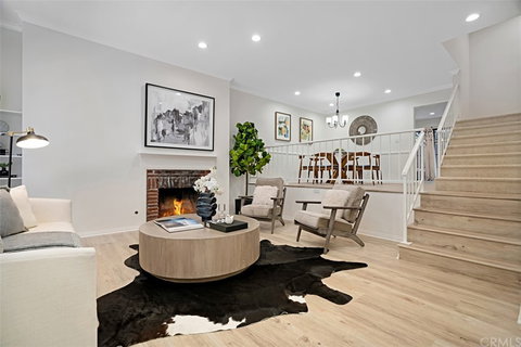 Beautiful townhouse in the popular and desirable Studio City. Just finished renovation with a modern touch. Here you enjoy cathedral ceiling, great formal living room with a fireplace open to the dining room. You may also have a full dining set or office desk in the large kitchen/nook area which opens to a patio as well.