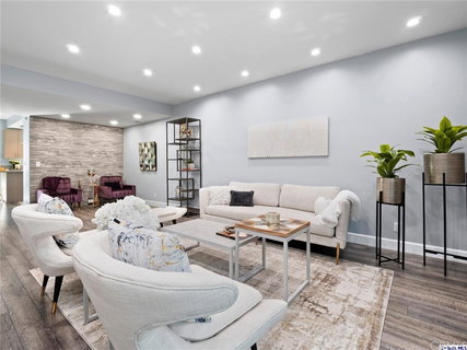 Spectacular 2BD/ 3BA Townhouse in Studio City near trendy Arts district. This masterpiece has been meticulously updated throughout and has an open floor plan, perfect for entertaining. The Living room has rich engineered wood floors, recessed lights, and a sliding glass door that leads to a private balcony overlooking a picturesque patio. The gourmet kitchen has all new custom cabinets, granite counter tops, stainless steel appliances, and water filtration system. Modern glass stair rails complete with stainless steel lead up to the upper level. The large Master suite has a skylight that provides an abundance of natural light, a walk-in closet and access to balcony. The Master bathroom features Marble counter-top, and soaking tub perfect for unwinding after a long day. Guest bedroom recessed lights, and an ensuite bathroom with detailed stonework. The building offers a pool and lounge area to cool off and relax durning hot summer days. 2 side by side parking spots in the building's secure subterranean garage complete with security cameras. In-unit washer & dryer and new water heater. Nestled in a desirable Studio City neighborhood with its great restaurants, shops, and grocery stores.Don't miss this unique opportunity to own your dream home!