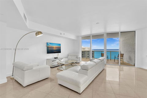 Experience oceanfront luxury at its finest in this stunning FURNISHED 2 bedroom plus den residence at Ocean Four. The open concept layout seamlessly blends the living, dining, and chef’s kitchen, all framing panoramic views of the Atlantic through floor to ceiling glass. Enjoy sunrise coffee or sunset cocktails from two spacious terraces facing east and west. The sleek kitchen features premium Miele and Sub-Zero appliances, a center island and custom cabinetry. The primary suite offers a spa inspired bath with jetted tub and glass shower. Building amenities include full beach service, pool, spa, gym, yoga studio, restaurant and 24 hour concierge. Steps from parks, cafes and the pier, minutes to Bal Harbour and Aventura.