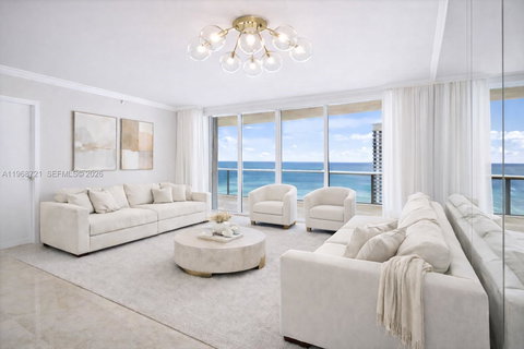 Direct Oceanfront Sophistication in the heart of Sunny Isles! Residence #1903 showcases panoramic sunrise ocean views and dramatic Intracoastal sunsets from an expansive wraparound balcony accessible from every room. Floor-to-ceiling impact glass, elegant marble floors, and a bright open kitchen with granite countertops & stainless steel appliances create a refined coastal ambiance. Spacious primary suite with spa-inspired bath, double vanities & Jacuzzi tub. Full-service beachfront lifestyle with beach service, rooftop & pool Jacuzzi, fitness center, tennis, spa & gourmet market. Prime location near Bal Harbour & Aventura Mall. Assigned parking & storage included.