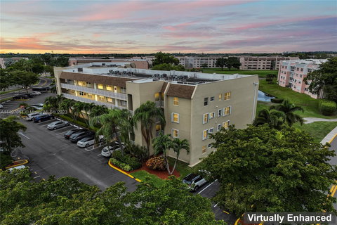 4th Floor Corner "PENTHOUSE" unit filled with Sunshine from every window. Age 55+. 2 Beds 2 Baths. Tiled floors throughout. Main bedroom w/huge walkin closet; Dressing area and large 2nd. bath. Large laundry room with nearly new extra large washer & dryer. Large den allowing for a Formal Living and Dining room. Large kitchen and Dinette area complete this home. Play golf all day! Course is your backyard. Recent new elevator; new roof. Flowering plants and Palms welcome you home at the guarded entry gate and everywhere you see. Short walk to pool. Clubhouse features year round entertainers and holiday parties. Fitness center; meeting rooms; Kitchen;Tennis; Pickleball; Media Center. Available Furnished. Conveniently located to Sawgrass Mills/Aventura. 20 minutes to Fort Lauderdale Airport