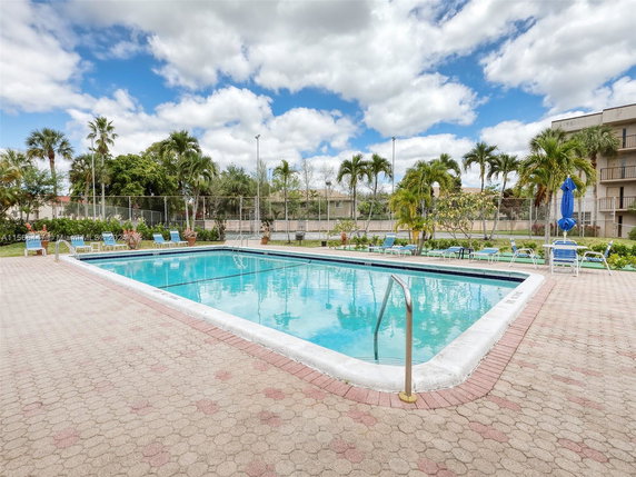 The building supports a 55+ community lifestyle, appealing to those seeking a serene environment. Amenities include a heated pool, clubhouse, exercise room, and spa/hot tub. Residents can enjoy shuffleboard, billiards, and quiet library time. The property also features tennis courts and barbecue areas for social gatherings.