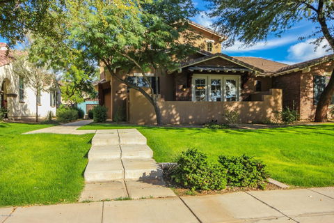 Gorgeous Marley Park Home just a few steps away from the community pool!! You are welcomed with a large front porch. Upon entry you will be welcomed with a freshly painted interior and neutral palet throughout. Kitchen has tons of cabinets, black appliances, corian counters, and a large breakfast bar. The eat in kitchen opens up to the private courtyard, where you can enjoy the gorgeous sun sets at night. Downstairs you will also find one of two master suites. Master has and oversized ensuite with dual vanities, separate tub and shower, and lare walk in closet. Upstairs you will find the second master suite, two other bedrooms and bathroom. This home is move in ready an sure to impress!
