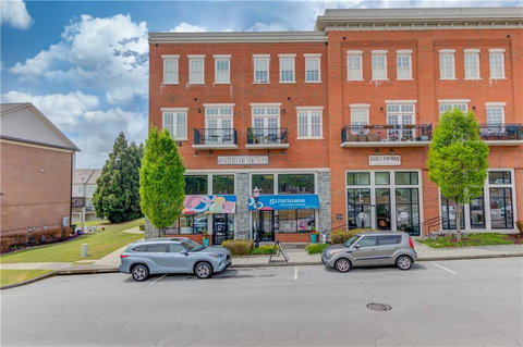 RARE 2 bed, 2.5 bath condo over Suwanee Town Center Park in the North Gwinnett School District! The main level features beautiful hardwood floors, a half bath, renovated kitchen boasting stainless steel appliances and open to the family room with built in bookshelves framing the fireplace and a dining room/office/formal living flex space! The upper level features the oversized primary suite with a renovated bathroom that features double vanity, separate shower, soaking tub, and closet. Secondary bedroom with ensuite bath and laundry closet also on the upper level. Restaurants, shops, concerts, and festivals are all within walking distance! This is THE address in Suwanee! 2 garage spaces included - spaces 4 & 44.