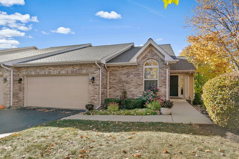 Desirable End-Unit Ranch Townhouse in Foxpointe Subdivision. Welcome to this spacious 3-bedroom, 3-bath end-unit townhouse that offers more than meets the eye. The charming walkway to the front door is beautifully lined with vibrant perennials, setting the stage for what lies inside. Upon entering, you'll find a convenient area for shoes and coats. The main floor features stunning hardwood floors throughout, with a picturesque living room window that floods the space with natural light. This flows seamlessly into the formal dining area, where you can enjoy lovely views of the backyard. The kitchen is a true highlight, offering ample space for a table or future island, complemented by generous cabinetry and Corian countertops. Fully applianced, it overlooks the backyard and leads to an oversized covered deck - perfect for soaking up the afternoon sun or unwinding with a drink of choice in the evening. The primary bedroom is ideally located near the kitchen, featuring an oversized closet that presents a fantastic opportunity for first-floor laundry. Natural light pours in, and the private en suite boasts a walk-in shower for added convenience. Nearby, you'll find a hall bath, as well as a spacious second bedroom with vaulted ceilings and carpeting. The English basement is a bright, versatile space that includes a full bath, a family room, and a third bedroom with delightful views of the surrounding green space. Additional storage and a workshop area make this a practical choice for any homeowner. Completing this beautiful end-unit is an attached two-car garage. Recent upgrades include a new HVAC system (2023) and a roof replacement (2018). With spacious living areas, vaulted ceilings, and picture windows, this home is both inviting and functional. Enjoy maintenance-free living with a combination of brick and vinyl exterior. Conveniently located near schools, shopping, medical facilities, and exercise options, with easy access to the interstate, this home offers the simple life with all the conveniences you need. Come see it for yourself!
