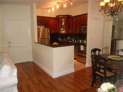 Stunning 2-Bedroom, 2-Bathroom Condo!Experience exceptional living in this beautifully updated and spacious open-concept home. Featuring a modern kitchen with 42" cherry-stained maple wood cabinetry, stainless steel appliances, a corner lighted glass display cabinet, and elegant crown molding. The home is adorned with gorgeous Pergo flooring throughout and detailed with 4.5" baseboards for a sophisticated touch,The expansive primary suite includes plantation shutters, while the large private balcony—complete with custom bamboo shades offers serene views of the pool. Enjoy resort-style amenities and embrace the luxurious "Country Club" lifestyle. A true gem you won’t want to miss!