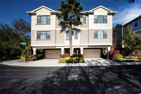 Welcome home to this magnificent townhome! Three stories of elegance and beauty. The bottom floor is the oversized garage and storage area. Room for 2 or more cars and a place for all your tools, toys or trinkets. There is also a spacious brick paver patio overlooking the pond – a great place to relax and unwind. The front door leads you up a wide staircase to the main floor where you are welcomed into a wonderful living area. There is a separate dining area as well as a cozy family room that overlooks a pond. The sliders open to a screened patio – perfect for a morning cup of coffee or a sunset dinner. The kitchen is a chef’s delight - beautiful granite counters, a tile backsplash, stainless appliances, and custom cabinetry create a warm space for entertaining. The dark engineered wood flooring throughout the main living areas and the crown moldings add elegance to the space. The master bedroom is also located on the main floor. It offers plenty of space as well as a custom walk-in closet and a bathroom with all the finishes – granite, a soaking tub and shower. The laundry room finishes off this floor complete with a granite, washer/dryer and cabinetry. Up the stairs you are ushered into a second living area. A large bonus room – perfect for another living room, bonus room or multimedia room. Completing this area are 2 bedrooms each with closets that have organizers. One is large enough to be a bedroom as well as a home office. This beautiful home is move in ready. This amazing home has it all – custom finishes throughout, storage closets, and has been impeccably maintained. The ring doorbell, security system and the programmable WIFI thermostat come with the house. This gated community has a pool and your HOA dues cover building maintenance, water/sewer and trash. Come see it today