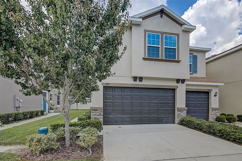 One or more photo(s) has been virtually staged. Rare to find 2 car end-unit townhome in highly sought after Bridge Haven community in the Citrus Park area! Come see and be impressed with this extra large unit, with open floor plan. Modern kitchen features 42" shaker style cabinets, granite counters and island and stainless steel appliances. Primary bedroom and bath, attached 2-garage, in-unit laundry (washer/dryer included)! HOA includes high speed Wi-Fi (500Mbps) & cable package (200+channels), plus gated pool! Brand new carpet and paint! Whole house water Softener system and RO Drinking water.
