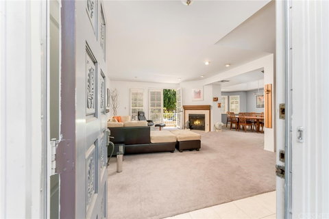 BACK ON MARKET 6/1 - SOLD IN MULTIPLE OFFERS -BUYER DID NOT PERFORM. Fabulous 2200 sq. ft., 3-bedroom, 2.5-bath, plus Den Townhome located within short distance to shopping, restaurants and easy freeway access. Located in a small resort like complex, this 24-unit Cape Cod Style home has it all, including a direct access, private 2 car garage with tons of cabinets, storage space, washer /dryer and a dumb waiter to carry your parcels directly to the kitchen. Downstairs features an open feel living room with doors opening to a balcony, plantation shutters, recessed lighting and a gas burning fireplace w/ wood mantle and marble hearth. The living room opens up to your spacious formal dining room featuring windows for lots of natural light and a wet bar area. Large eat-in kitchen with center island, tons of cabinetry & counter top space as well as a picturesque window garden. The downstairs includes a large den (which can be used as an office, bedroom, gym, etc.) and a good size powder bathroom. A beautiful spiral staircase leads you to the 2nd floor, which features 3 spacious bedrooms – Large Primary Suite with walk-in closet, bathroom with large soaking tub, walk in shower and dual sinks. The 2 secondary bedrooms are also large in size and share a hall bathroom featuring dual sinks and a tub/shower combo. Beautiful, lush landscaped grounds feature a pool, spa and tons of green-space. The townhome complex has a gated & secure main entry and parking entrance. Your buyers will love living in this resort like complex which truly has everything they are looking for. HOA Includes Earthquake Insurance.