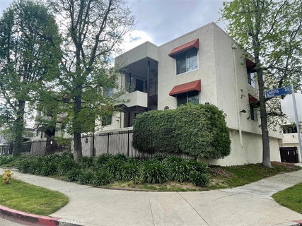 Well maintained and security gated Condominiums. This 2 bedroom, 1 bath unit is on the top floor. Updated kitchen has stunning “Van Gogh Blue” counters with white cabinets, Recessed lighting and built-in appliances, dishwasher, plus an electric stove and microwave are included. A breakfast bar separates the open concept. Recessed lighting in living room and dining room. stunning laminate flooring in living/dining rooms, bedrooms, hall and bathroom. Good size master bedroom has a private vanity area with sink, separate from the full bathroom, allowing 2 people to get ready for work at the same time! Both bath areas have cabinets and stunning black granite counter tops. Both bedrooms have sliding doors to the private patio. Two car tandem covered parking spaces close to the stairs leading to the unit. Parking area is also gated. Central heat and air. The complex offers additional storage room for this unit at no additional cost. The unit is approx. 5x5x8, and there is more space for storing your bicycle. There is a community laundry area. Community pool includes patio tables & chairs and lounging chaises. A short walk to shops and restaurants on Ventura Blvd.