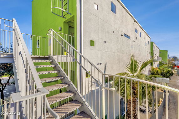 The condos feature modern loft-style designs with high ceilings ranging from 12 to 22 feet. Large windows bring in plenty of natural light and enhance the open feel. Many units come with private balconies or patios where residents can enjoy city and mountain views.
