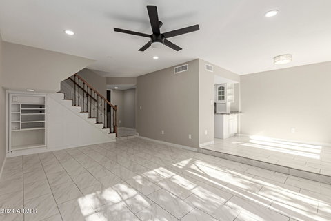 Your freshly remodeled townhouse is here! This two-story jewel greets you with 2-carport spaces and a gated entrance. Immaculate interior has a spacious living room, newer tile floors, modern light fixtures, a formal dining area, and abundant natural light. Cook like a chef in the elegant kitchen equipped with granite counters, white cabinetry, stainless steel appliances, and a breakfast bar. Upstairs, the carpeted bedrooms await! Discover a main retreat boasting a cozy sitting room, a wall-mount ironing board, a walk-in closet, and a glass block wall that divides the bathroom area. A freestanding tub, step-in shower, track lighting in vanity, and private toilet area complete the main bathroom area! The paver patio with a built-in BBQ is ideal for fun weekends. You will love this unit!