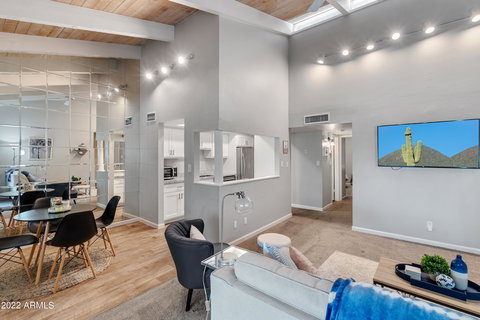 Many upgrades in 2021, renovated kitchen, bathroom, flooring, appliances, paint, plumbing, electrical fixtures a true gem close to ASU!