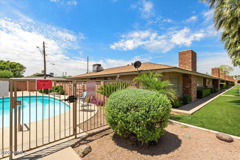 72 Hour Home Sale ....offers to be reviewed by June 30th. Spectacular location near ASU townhome. This two bedroom one bath has the perfect amount of space. Freshly painted, new ceiling fans, blinds and appliances.Living room has wood burning fireplace and built in shelving. Kitchen has lots of counter and cabinet space. Tile throughout the home. Laundry room and extra storage area located under the covered carport that is convent to the home. Community is well maintained with lush grass and large palm trees also just a short walk away is the community pool. Townhome is ready to move in this little gem will not last.Seller reserves right to accept an offer at anytime.
