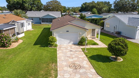Discover this adorable 2-bedroom, 2-bathroom Cabot Cove patio villa located just a short distance from the vibrant Spanish Springs Town Square. This cozy home boasts a BRAND-NEW HVAC system, ensuring comfort year-round, a NEW garbage disposal, brand NEW microwave and a BRAND NEW ROOF for added peace of mind. The home has a large laundry room off the kitchen, complete with a large pantry. From the living room, there are custom sliders with built in blinds that lead to a paver patio complete with a gated vinyl fencing. The primary bedroom offers a split ensuite and large walk in closet with additional built in storage. The guest bedroom offers a custom closet system. Both bathrooms have brand new toilets. The home comes partially furnished for an easy transition to living your best life. The exterior of the home stands out with custom stamped concrete driveway and walkway. Enjoy all the amenities and activities The Villages has to offer, just a stone’s throw away from your new home. Don't miss out on this delightful property! The Ez-Go golf cart is included. NO BOND!